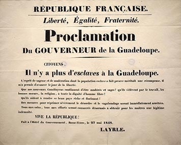 Proclamation accompagnant l’arrêté d’abolition de l’esclavage du 27 mai 1848.
