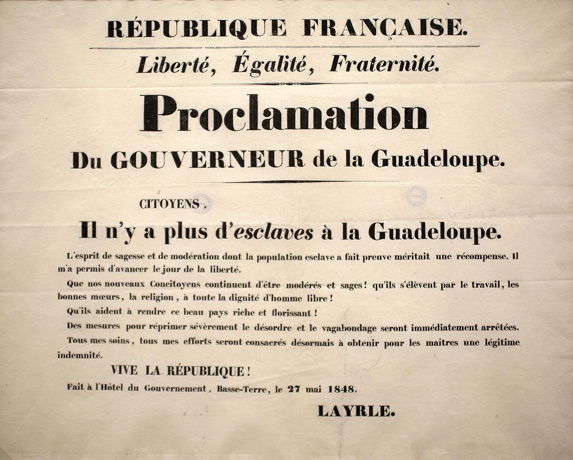 Affiche de proclamation de l’abolition en Guadeloupe.