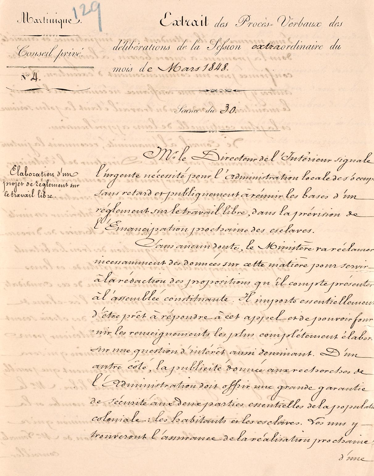 Elaboration d’un projet de règlement sur le travail libre, 1848.