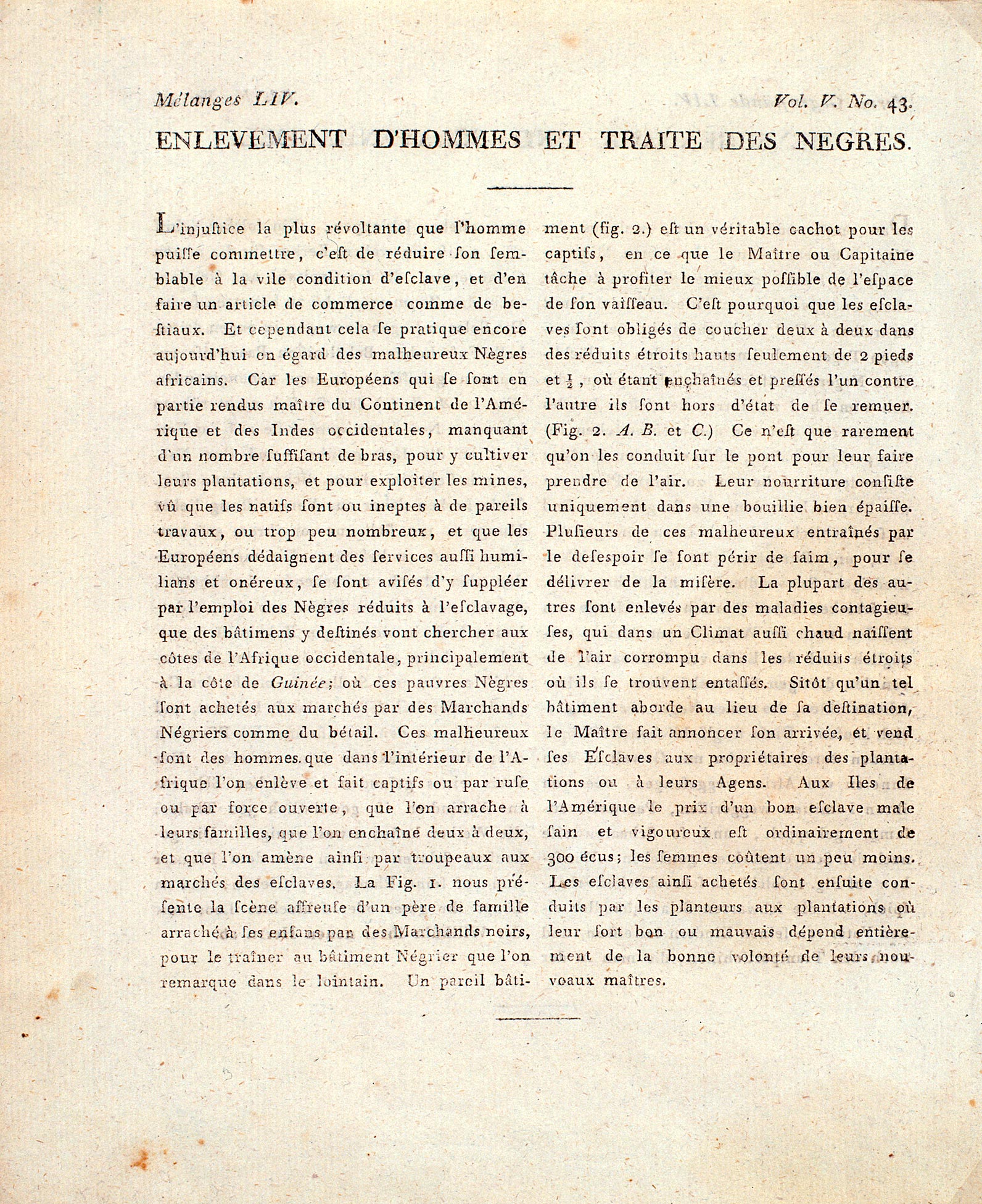 Enlèvement d’hommes et traite des Nègres, fin du XVIII